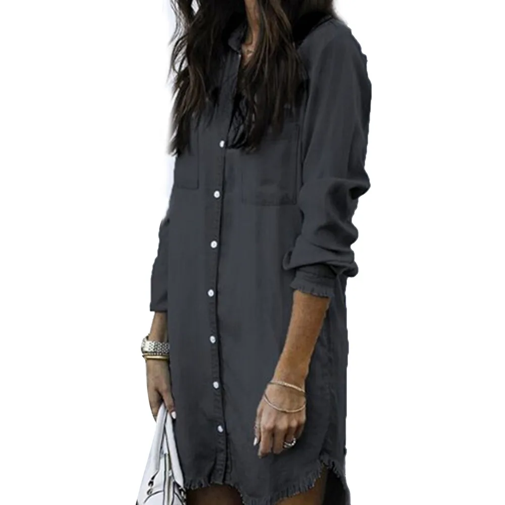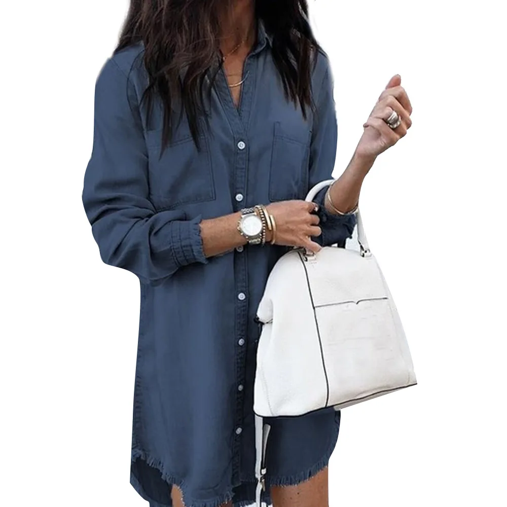 discounted Women Long Sleeve Jean Blouse Denim Shirt Dress Female Plus Size Turndown Shirts Summer Lady Casual